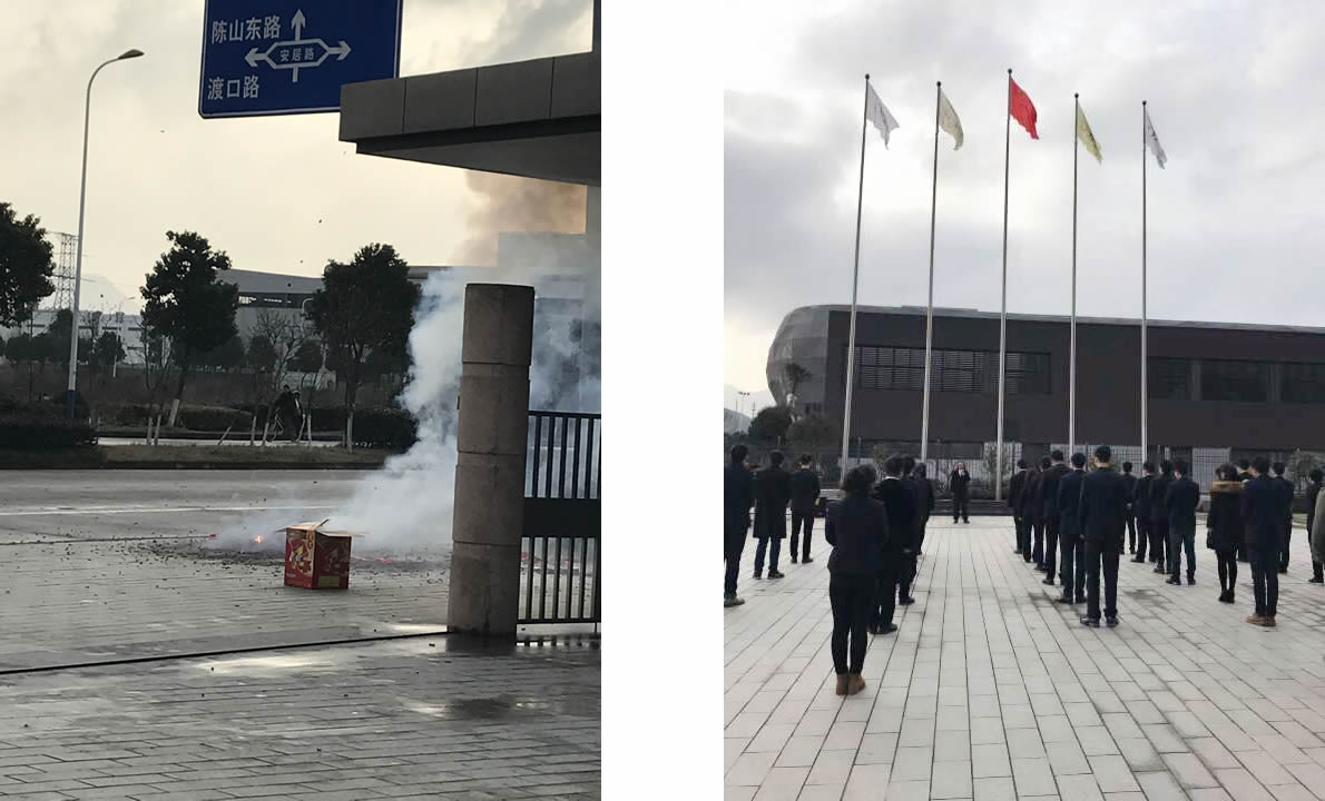 今天是全體大正同仁春節(jié)過后上班的第一天,上午8:28分,伴隨著陣陣禮炮聲,高唱著中華人民共和國國歌,員工們個個精神飽滿,總經(jīng)理戴總攜全體員工參加了升旗及新一年開業(yè)儀式。